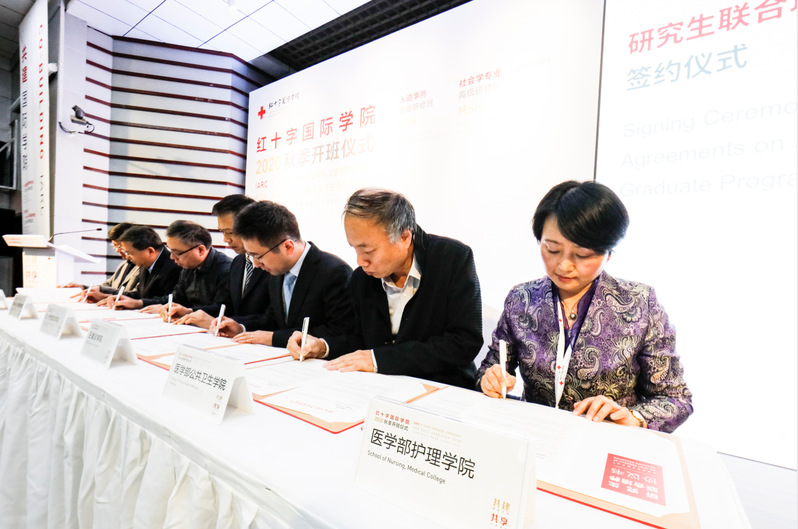 在此次活动仪式上,苏州大学副校长、红十字国际学院执行院长杨一心代表红十字国际学院与苏州大学护理学院等几家学院签署了研究生合作培养协议。未来将以共同招生、联合培养等形式合作开展人道工作方向的硕士、博士研究生教育。